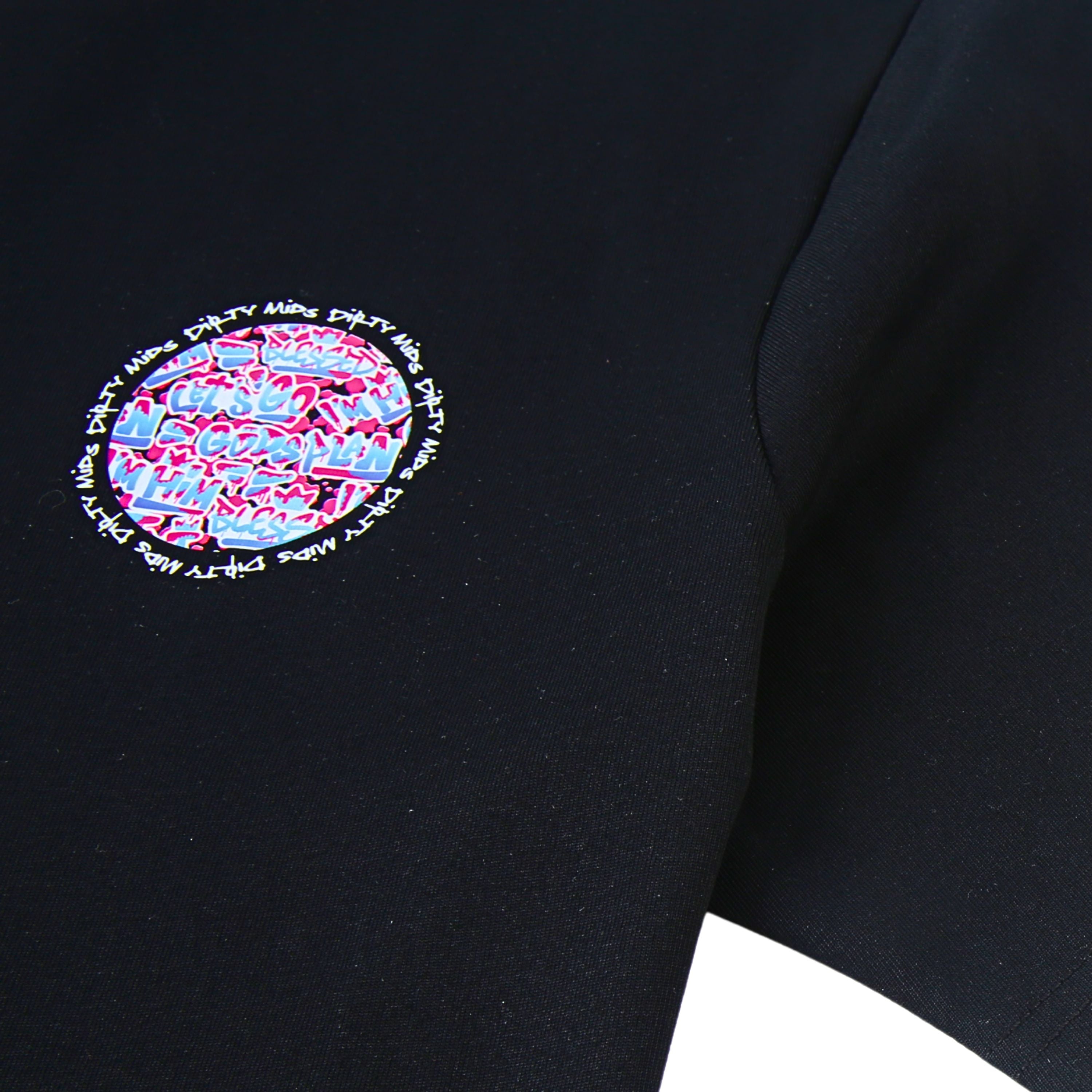 Front + Back Hits – Micro graffiti-circle graphic up front, full mural on the back.